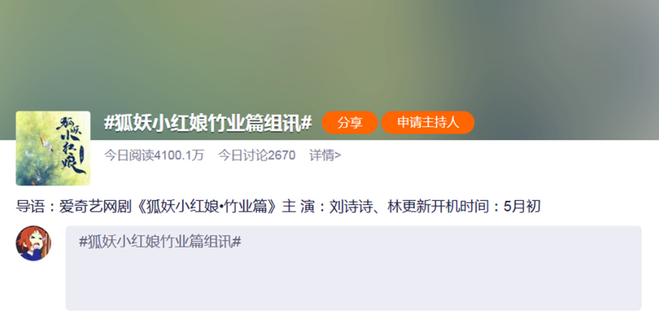 各位小伙伴们你们怎么看待林更新和刘诗诗出演《狐妖小红娘:竹业篇》呢?你们对于漫改真人剧怎么看呢?欢迎大家一起来讨论。